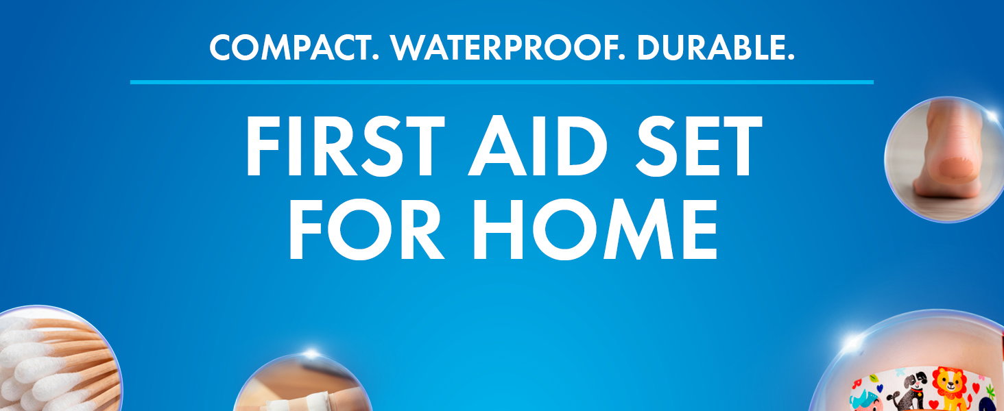 Mini first aid set for home, waterproof bandage bag, handy emergency kit with 107 pieces, first aid kit blue