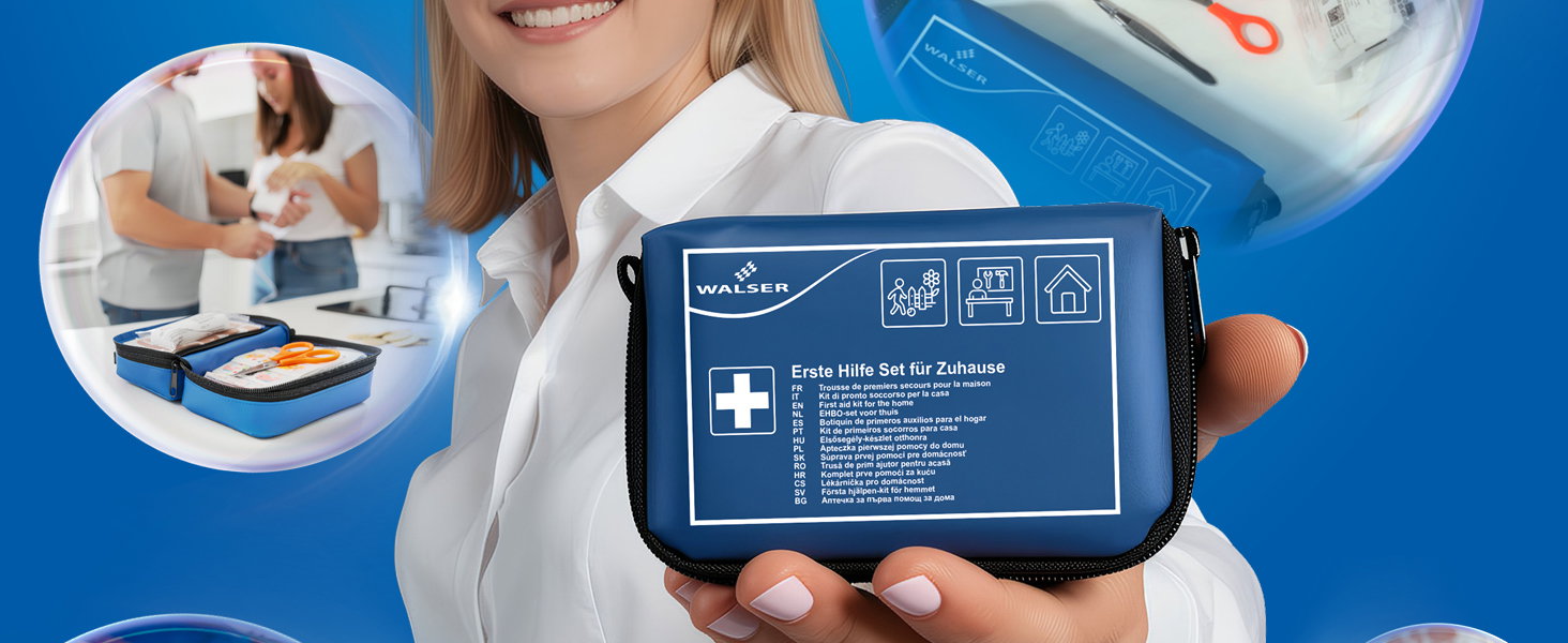 The first aid set is designed to be user-friendly so that every item can be found quickly. Thanks to its handy size, it can be easily placed in a cupboard, drawer, or within easy reach in the living area – for fast help without loss of time.